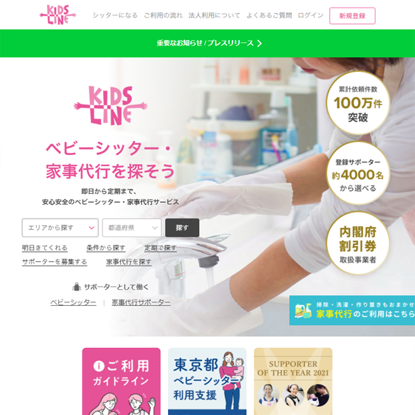 - 定期・単発利用可!産前産後や病児ケアなどの要望に合わせ専用コーディネーターが最適なシッターをマッチング